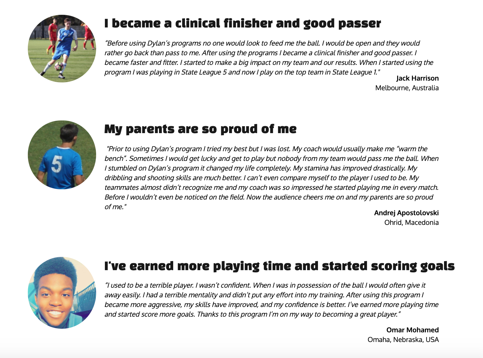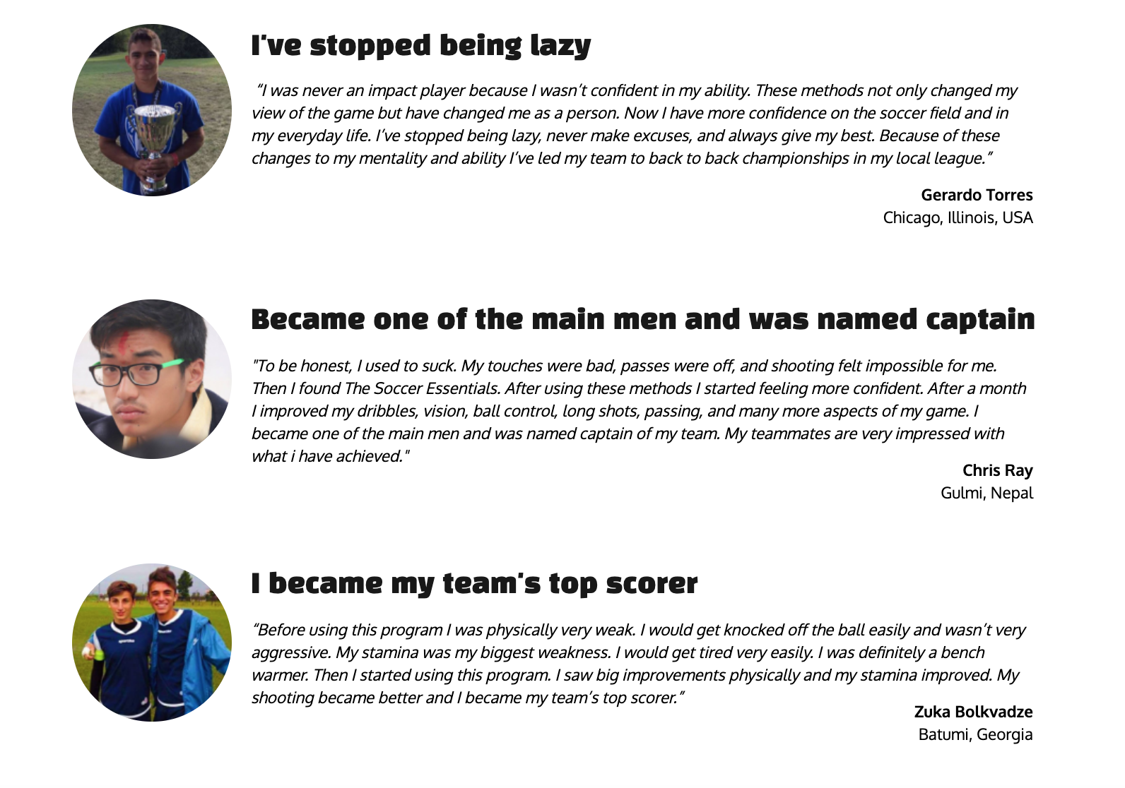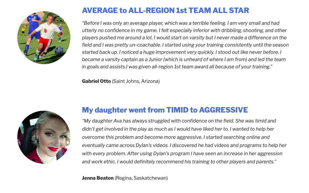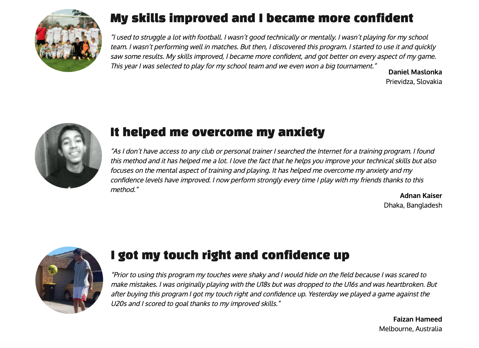 I’ll share with you my personal daily routine and send you detailed instructions including drills, sets, repetitions, and times to follow along at first before you eventually create your own unique daily routine for never ending soccer improvement.