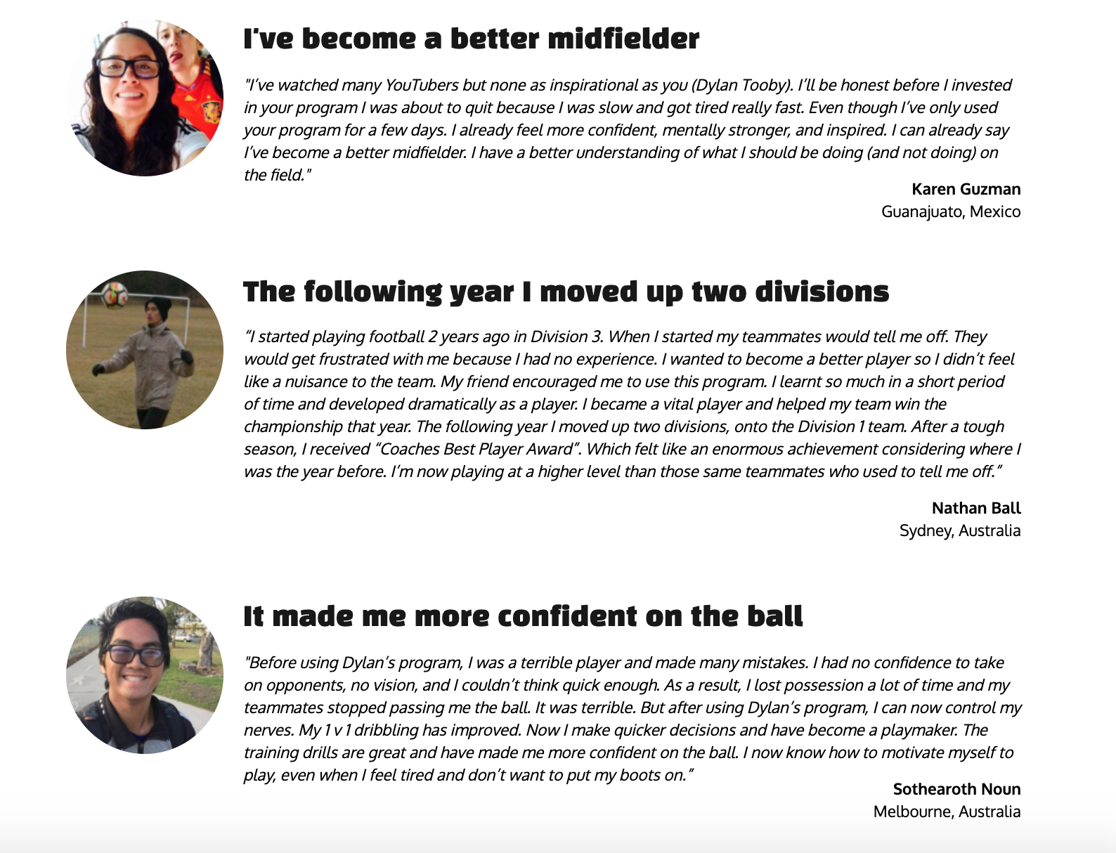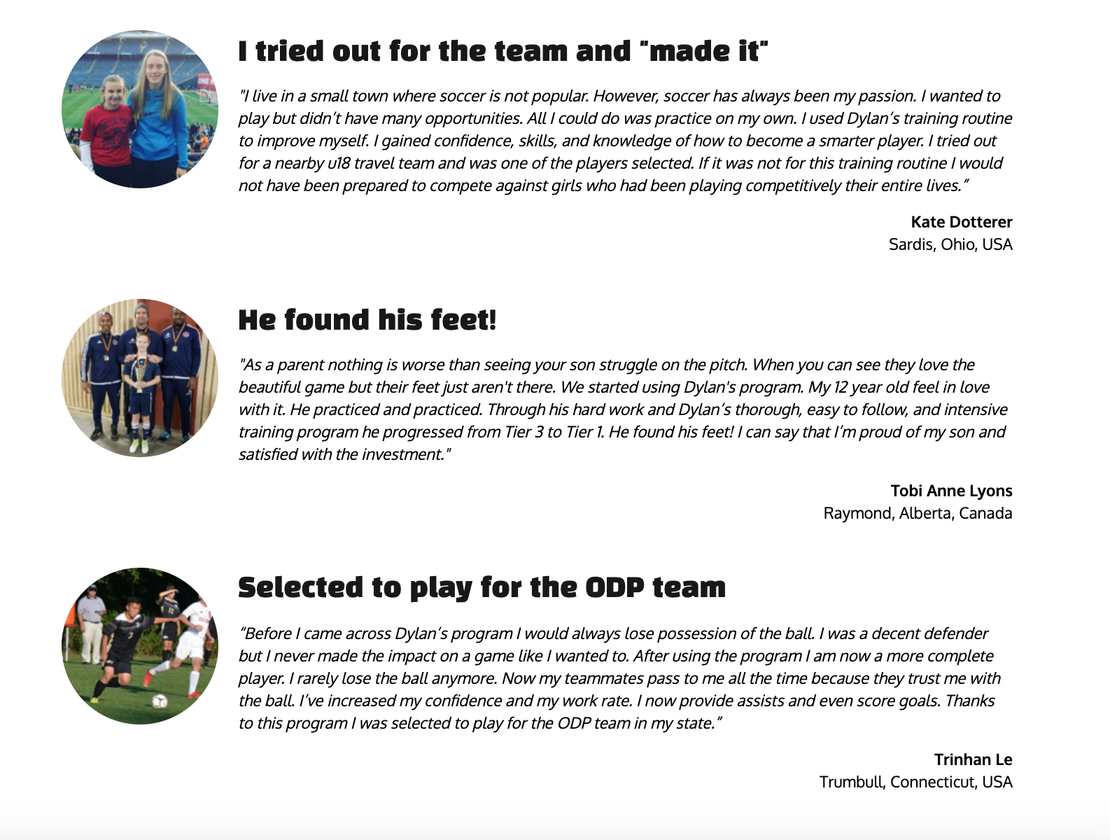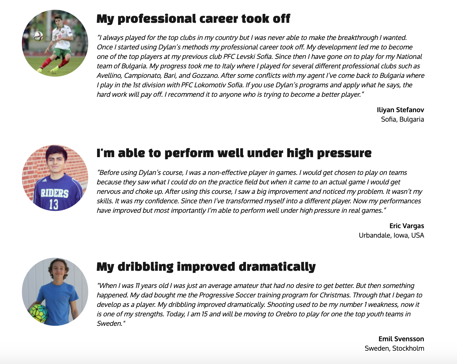 I’ll share with you my personal daily routine and send you detailed instructions including drills, sets, repetitions, and times to follow along at first before you eventually create your own unique daily routine for never ending soccer improvement.